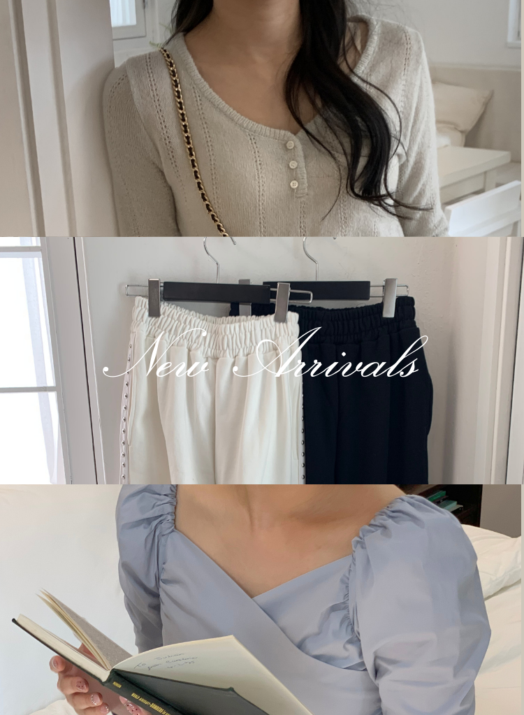 📍Marsha Shirring Tee(ivory/beige/black) ¥4,600 📍Brace Lace Tee(ivory/gray) ¥4,500 📍Stone PT(white/bl...